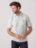 Look no further for your next go-to summertime shirt than Quba’s pale green short sleeve shirt, Sergio. Also available in pale pink, Sergio’s allover fine white feeder stripe adds unique texture, and linen rich fabric keeps you cool when under the sun… A necessary companion for any getaway.