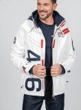 X-10 Men's Jacket - White with sail-stitching, Navy appliqué letters and numbers and embroidered patches.